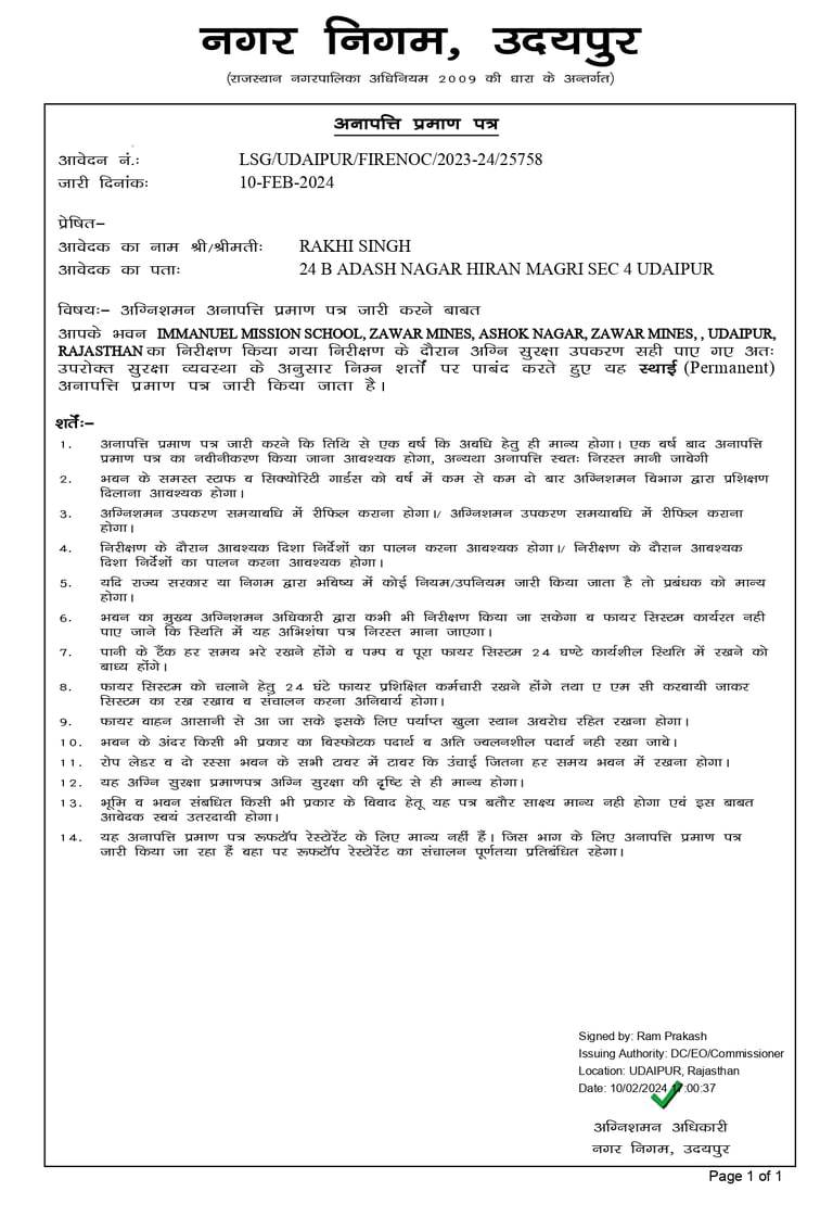 No Objection Certificate (NOC)